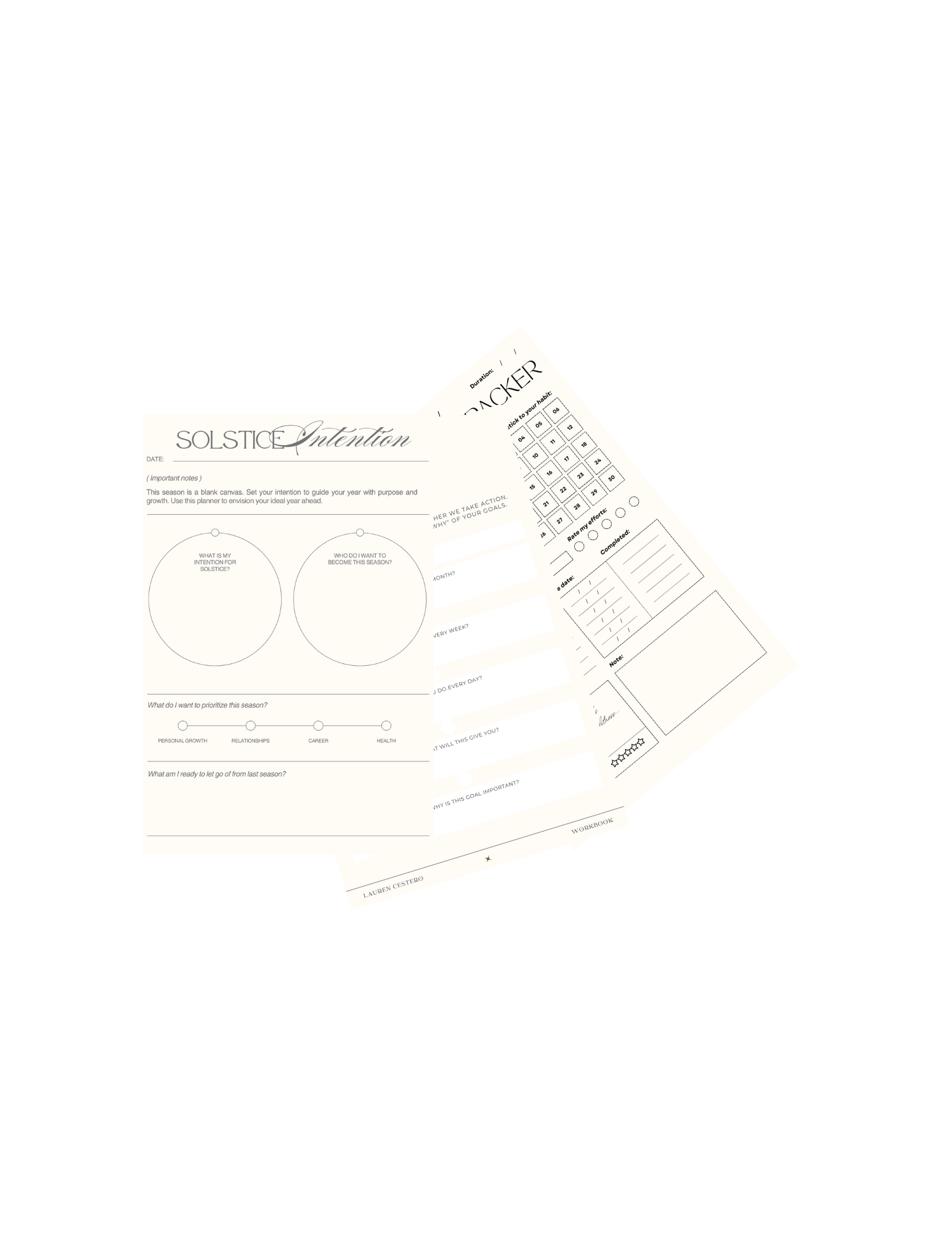 These tools aren’t just worksheets—they’re a map for your month. Through guided intentions, habit trackers, and goal-setting prompts, you’ll stay focused and embodied, gently shaping your life with clarity and care.